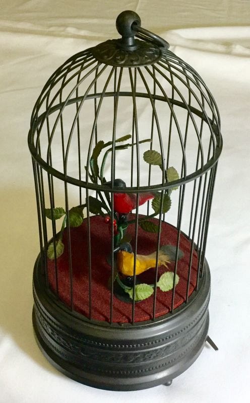 A fully operational automaton bird cage featuring 2 moving, tweeting birds and standing 27 cm tall.